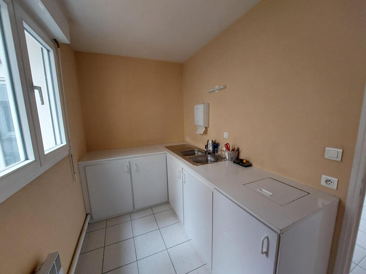 distribué comme suit : un hall d’accueil, une salle d’attente, des toilettes avec lave-mains, un local technique, un dégagement avec rangements, une salle de radiologie, une grande pièce, une pièce supplémentaire avec placard, un couloir, un bureau, une autre pièce aménagée ainsi que des toilettes.