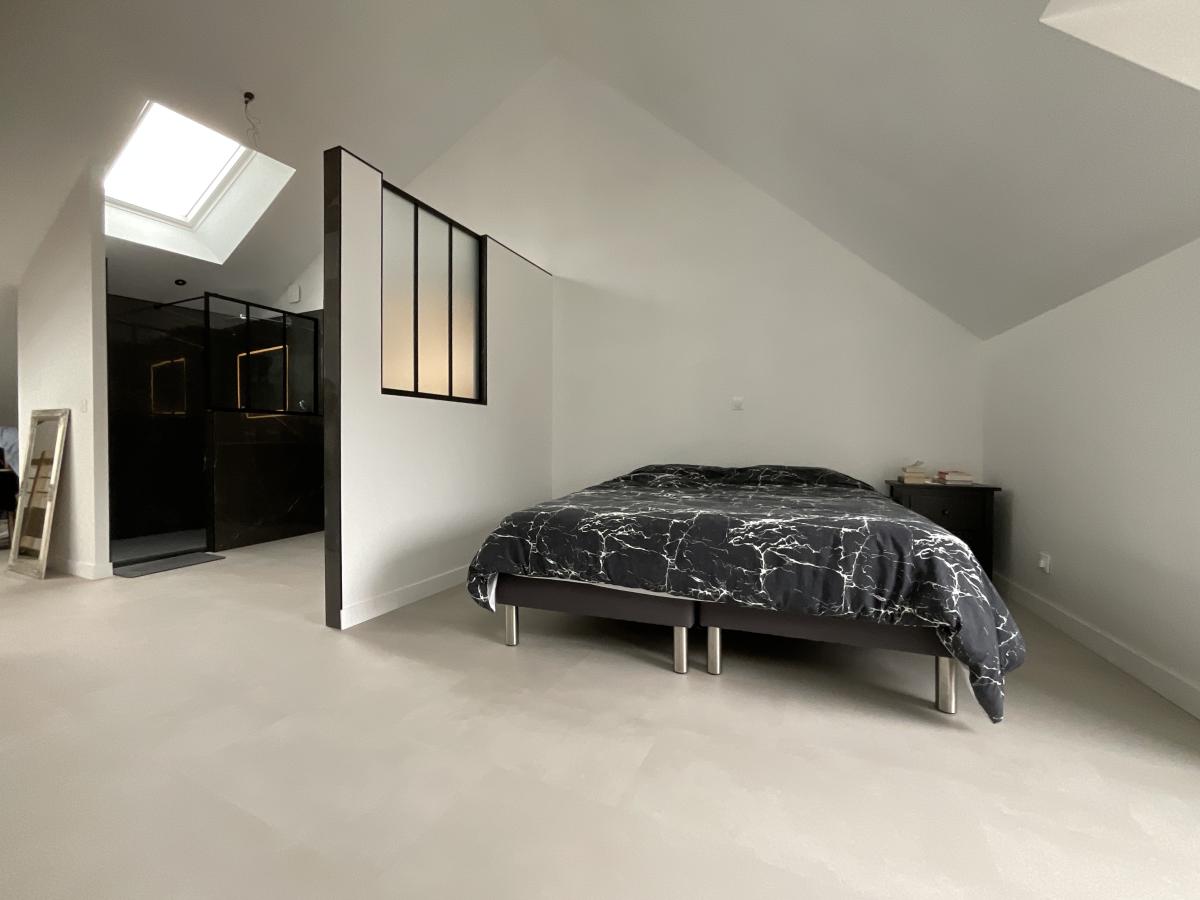 Rénovation très récente pour cette maison atypique. La vie se fera au premier étage avec jardin, pièce de vie généreuse avec cuisine aménagée équipée, bureau, salle d'eau, deux chambres une bibliothèque et véranda.