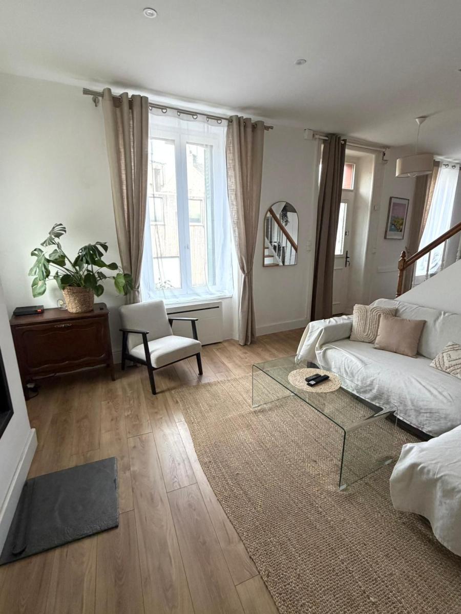 Charmante Maison de ville Comprenant un salon avec poêle à bois, une cuisine aménagée et équipée, A l'étage un palier dessert 2 chambres et un wc....