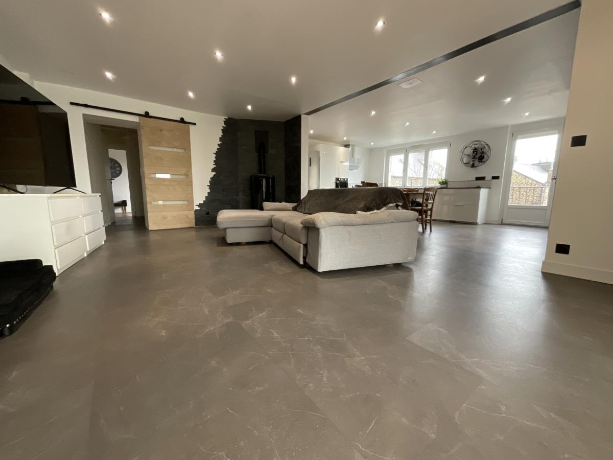 Rénovation très récente pour cette maison atypique. La vie se fera au premier étage avec jardin, pièce de vie généreuse avec cuisine aménagée équipée, bureau, salle d'eau, deux chambres une bibliothèque et véranda.