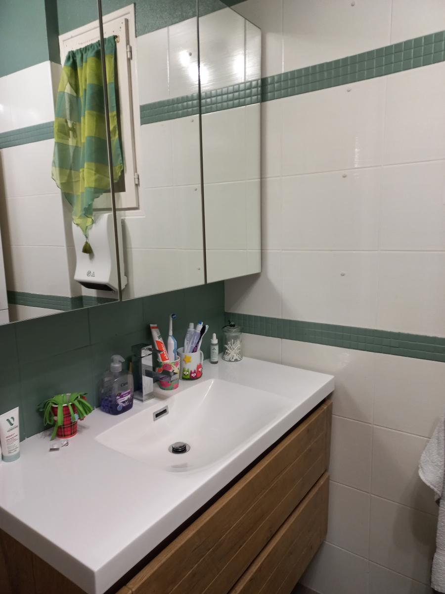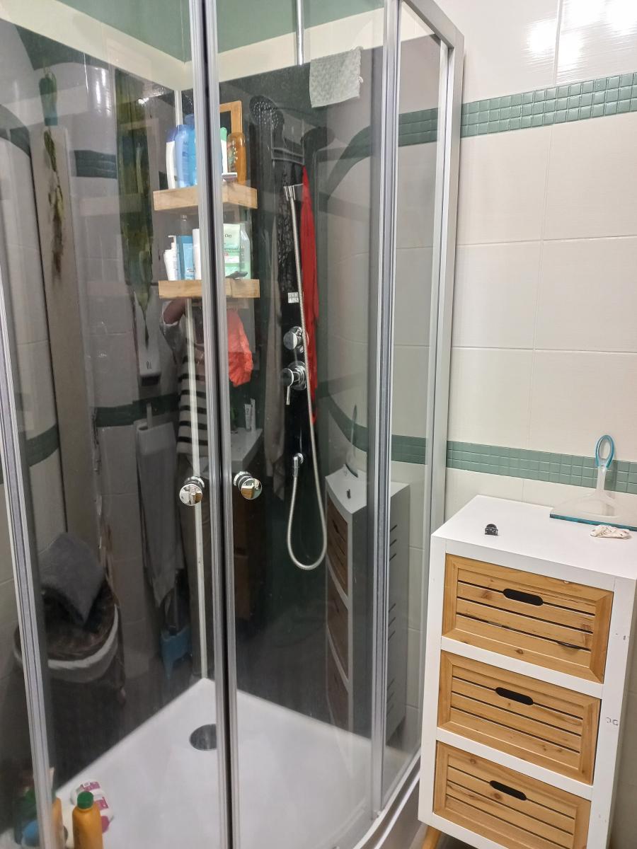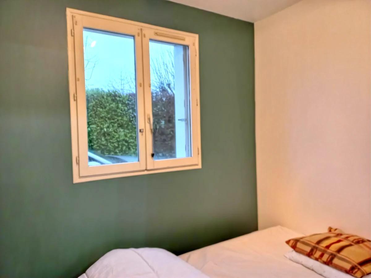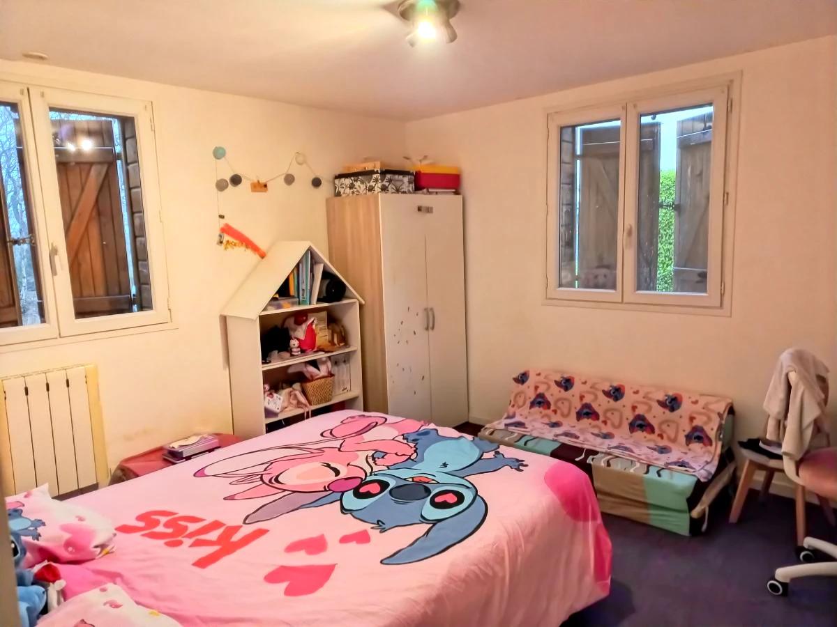 Maison de plain pied, comprenant : une pièce de vie avec cuisine aménagée et équipée et poêle à granulés, deux chambres, un bureau, une salle d'eau, un wc.