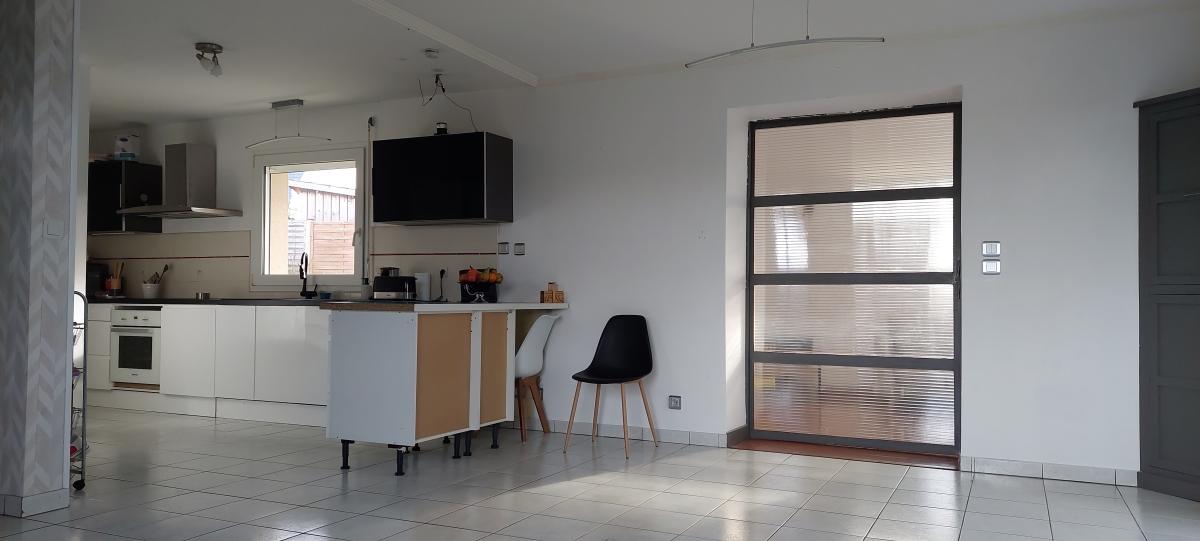 - Au rez-de-chaussée : salon séjour, cuisine, chambre, salle d’eau avec WC et garage.