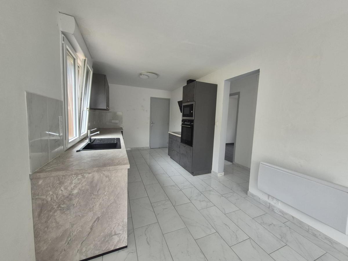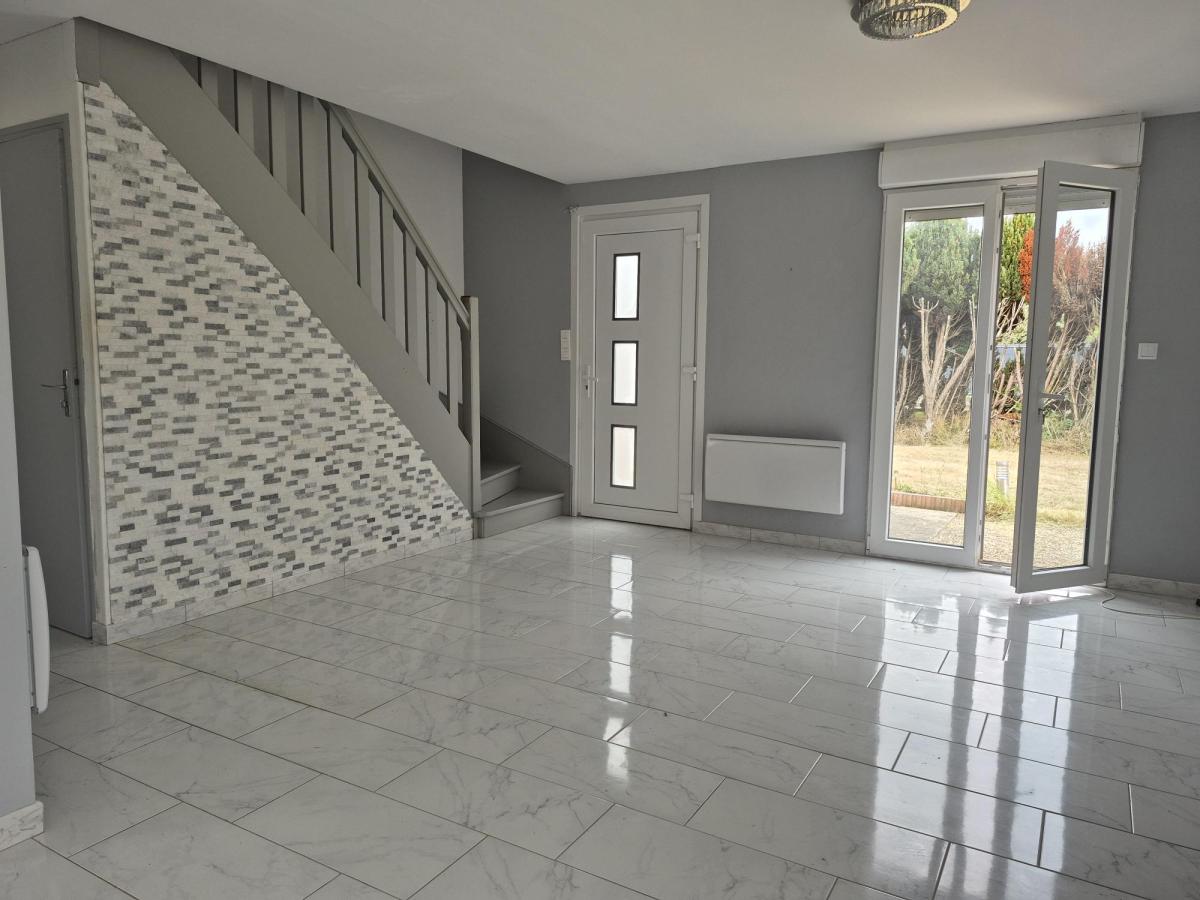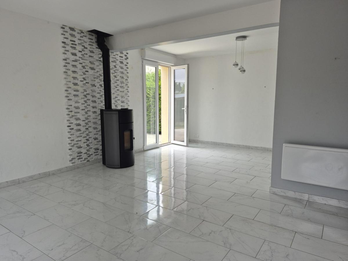 - Au RDC : entrée, séjour-salon avec cuisine ouverte et poele àbois, dégagement, chambre, wc, salle d'eau avec wc, garage.